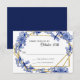 White background with light blue, royal blue and navy floral design RSVP Response Card | mix and matches with the Asian Influence Blue White Floral Chinoiserie Collection of Wedding invitation Suites. Copyright, Audrey Jeanne Roberts. Hand painted watercolor Blue Asian Influence Floral Chinoiserie design has a complete collection available here (copy and paste link into browser): https://bit.ly/2DS0gN6