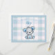 Send these adorable, baby shower RSVP designs to your guests. Cute grey bear on baby blue plaid blanket with stitched hem. Template created for you, and there is a matching Cute Grey Bear collection found in the tab at top.