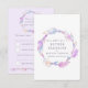 Double-sided simple modern watercolor boho feathers and beads mother blessing wreath art RSVP. Customise with your own name and reply details. White background on front and light purple on the reverse. Pretty dreamy lilac, blue and coral red brown shades of a circle of stringed feathery beading. Other matching items available. Original watercolor art and design by Sarah Trett for www.mylittleeden.com