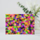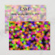 A romantic and elegant wedding rsvp, with a multicolored abstract pattern of out of focus lights creating a sparkling shiny colourful background known as bokeh. Vibrant and vivid in neon colours include fushcia pink, lime green, royal purple and tangerine orange.