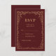 Complete your wedding suite with this elegant burgundy and gold minimalist RSVP card. The rich wine background paired with refined gold detailing creates a warm and luxurious look that coordinates perfectly with classic wedding invitations. Clean typography and simple response fields keep the card clear, modern, and fully print ready for your guests.