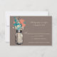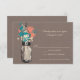 Perfect for a country style wedding or maybe you just love Mason Jars! A Burlap texture background with the hanging Mason Jar filled with twigs, teal, coral and cream coloured wildflowers. If you have any questions on this design or want a colour change please email me paula@labellarue.com IF YOU NEED A MENU CHOICE ADDED OR ADDITIONAL INFORMATION LET ME KNOW. Also check for the WEDDING INVITATION & RECEPTION card to match!