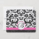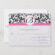 RSVP Cards-Black & White Damask Hot Pink Trim Card