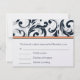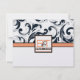 Black and White Floral Damask Swirl with Coral Accents Wedding RSVP Reply Card Invitations. Rococo Baroque Floral Patterns Perfect for Mediaeval Renaissance, Art Deco Art Nouveau, Roaring 20s Gatsby, Wedding Themes Venues