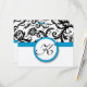 Black and White Damask Floral with blue Trim-Perfect for all your invitations and party announcements. Choose from six paper types and nine colours. Vibrant, full-bleed, full-colour printing and free two sided printing. Each invitation comes with a white envelope. Style and Size: 4.25" x 5.5" Paper Type:Linen. If you would like a glossy finish order the basic, linen or metallic papers (glossy finish on front side only) - for a matte finish order recycled, felt or speckled.