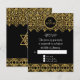 In a classically elegant colour palette of black and gold this invitation suite will stand out in honour of your daughter's special day! An RSVP Response card for the matching Bat Mitzvah Invites. Elegant and sophisticated grandeur for your special day. This Modern take on a vintage Art Nouveau style could easily grace an English Manor House Style soiree or an formal occasion. Shown here for a Bat Mitzvah celebration, this design is available in these other categories: Birthday party, Anniversaries, Wedding Invitations and Bridal showers. Also available in a range of colours. The background is a soft, aged, subtle damask floral pattern in black. The lace like borders are rendered in a very realistic looking faux gold glitter with twinkle light sparkles. An Art Deco frame with swirl scrolls in black and gold sets off the title of your event. On the reverse side is a beautiful Star of David symbol emblem. The template fields are easy to customise for your own personalised invitation wording.