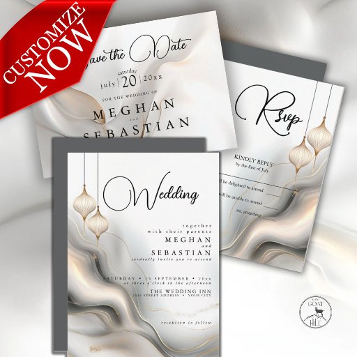 RSVP | Customisable RSVP details make it easy for your guests to respond. Celebrate your love with a design inspired by the timeless beauty of Middle Eastern architecture. Featuring graceful arabesque arches, soft ivory tones, and luxurious gold and charcoal detailing. Created by ©WhimsicalArtwork™ This is part of a complete Wedding Stationery Suite