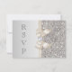 Elegant custom silver and light champagne RSVP cards with a beautiful printed silver sequins pattern, a cute shiny lilac printed bow and ribbon and pretty printed diamond bling jewel. These classy, glamourous, fashionable flat cards are decorated both sides. Beautiful, chic, trendy, modern invitations. PLEASE NOTE: These are flat printed graphics - no real bows, sequins or raised parts. Text, font and colour of font can all be customised. If you need assistance customising your product please contact me through my store. I will be happy to help. I have matching products in my store.