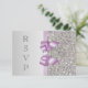 Elegant custom silver and lilac RSVP cards with a beautiful printed silver sequins pattern, a cute shiny lilac printed bow and ribbon and pretty printed diamond bling jewel. These classy, glamourous, fashionable flat cards are decorated both sides. Beautiful, chic, trendy, modern invitations. PLEASE NOTE: These are flat printed graphics - no real bows, sequins or raised parts. Text, font and colour of font can all be customised. If you need assistance customising your product please contact me through my store. I will be happy to help. I have matching products in my store.