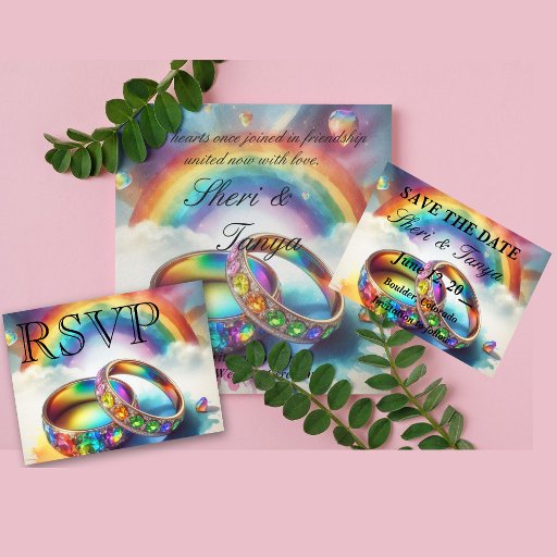 RSVP Gay lesbian Rainbow Rings RSVP Invitation