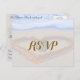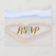 Romantic heart in the sand RSVP cards for beach weddings.A sand dollar rests in the middle of the heart drawn in the sand. Couples can personalise many details from entree choices to wedding location. Brides and grooms can use this attractive marriage design alone or coordinate it with matching postage stamps and wedding ceremony invitations.