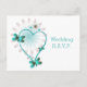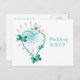 Wedding rsvp postcard mint coloured butterflies heart design. You can customise this mint coloured wedding rsvp card with your wedding details. Should you require any help with customising then please contact us through the link on this page. Mint coloured heart butterflies design personalised wedding rsvp postcard