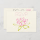 An elegant and chic rsvp card. An outline of a lotus flower / water lily. Petals outlined in pink and the leaves outlined in green.