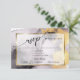 RSVP | Hand painted marbled splash in shades of gold, pale pink and charcoal black - and a gold frame with a sheer white centre highlighting the invitation text. Handwritten script calligraphy text on the diagonal at the top allows a warm personal appeal - easy to personalise template.