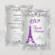RSVP Sweet Sixteen Princess Purple White Silver Photo with Eiffel Tower, 16th Birthday Party And a Pink Pearl Jewel. Magical TEMPLATE - Click the "Customise It" button on the product page Zizzago created this design. PLEASE NOTE all images NOT Diamonds Jewels or real Bows!!