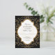 Matching RSVP Response return by mail card including white envelope. NOTE: This is a flat printed invitation, there is no real glitter or metal foil used. Effects are graphically produced. DESIGN COLLECTION: Beginning with hand drawn script swirl calligraphy flourishes that have been turned into a graphic glitter effect and paired with a double border quatrefoil style frame also in golden shimmery glitter effects. Inside the frame and behind your easily customised text template is a sunburst hand drawn line design. On the reverse side is a place to put your monogram initial inside the glittery starburst design. This invite is the perfect marriage of sweet, romantic sentimental design and modern elegance. Easy to customise for any occasion and a complete set of products are available. COLORS: black, creamy off-white and digital gold glittering look.