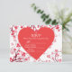 RSVP card with a red Valentine theme, you can use this card all times of the year. With a heart design on a white background, there is a bright red heart with your RSVP information inside. Personalise yours today!