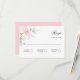 Simply elegant floral bouquet design in watercolor (watercolour) pastel green greenery, blush pink, dusty rose, white flower roses / cherry blossoms on white background and dark grey letters. Delicate RSVP / REPLY / RESPONSE cards for budget wedding or shower party.