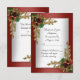 RSVP response card Holiday wedding invitation with festive pine cone decoration on a red and white satin-look background. This is a printed design with no separate embellishments.