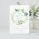 Matching RSVP return cards with envelopes. Hand painted watercolor artwork by Audrey Jeanne Roberts is inspired by the time she spends each year in the Southwestern desert. A wreath of cactus and succulents in bloom have flowers of soft pink, peach and magenta along with leaf tendrils in greens and grey. Rustic worn grey wooden, reclaimed fence boards are featured on the reverse side. Easy to change out the text using the template fields. Copyright all rights reserved.