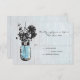 Perfect for a country style wedding or maybe you just love Mason Jars! Old vintage Blue Mason Jar hanging on a hook with wildflowers against a weathered barn. Cooling Spring Colours. If you have any questions on this design or want a colour change please email me paula@labellarue.com Also check for the WEDDING INVITE, RECEPTION and GUEST SEATING Cards to match!