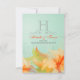 Beautiful contemporary abstract flowers in a bright bouquet of mandarin orange, yellow, lime green, and aqua blue. Perfect for tropical or spring and summer weddings. Stylish enough for trendy modern brides, but with a touch of traditional class and vintage garden charm. Elegant and affordable custom wedding invites and cards priced for frugal brides on a budget. More casual in style than the coordinating formal version in this wedding set -- makes statment of simple elegance. Shown in basic paper stock -- available in premium quality felt, linen, recycled, and metallic options. Customise it to change the font colours and styles. Please contact us if you would like this design modified to match your bridal party colour theme. Matching invitations, postage, and complete wedding packets available.
