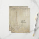 Warm cream with taupe colour background colour way. Matching RSVP Response return card that includes white envelopes at no additional charge. Though this artwork looks vintage it is newly painted by Audrey Jeanne Roberts in an antique Parisian retro colour palette and style Wedding invitation set. Inspired by turn of the century wallpaper in a floral swag with swirl scroll borders, the Eiffel tower in the background and an elegant chandelier. Beautiful hand lettering handwriting fills the background along with a hand written "Paris." There is a complete wedding invitation collection set available to match.