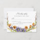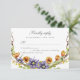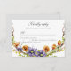 Rsvp Response card featuring watercolor spring flowers, tulips, forsythia, clematis and twigs in colourful arrangements.