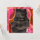 * Energetically Enhanced RSVP + Wedding Invitation DIY all in one Abstract HOT PINK BURGUNDY MAROON AGATE BLACK frame as an abstract WAVE and a faux GOLD glitter borders.