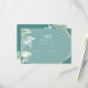 Wedding rsvp | Elegant and chic, this botanical illustration of wildflowers and berries is adorning a sheer gold edged crystal style geometric frame that has facets of transparency - very ornate white calligraphy says rsvp in the centre - the background we chose is teal but you may change it to suit your wedding colours -choose a shade dark enough to allow the white text to show. The back is also decorated with these beautiful wildflowers, part of a coordinated wedding suite.