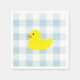 Enjoy our rubber duck blue gingham pattern napkins for baby showers or birthday parties.