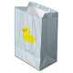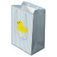 Enjoy our rubber duck blue stripe gift bag for baby showers or birthday parties.