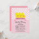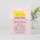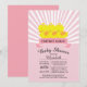 Modern bold & cute ducky Baby Shower invitation featuring a cute yellow ducks for a Triplet baby girls baby shower. Our classic rubber duck invite features a pair of sweet Triplet duck with pink bows and contemporary banner set on a light pink & white vintage radial stripe background and has a matching back for an extra special touch. Perfect for a duck themed baby shower for baby girl Triplets.
