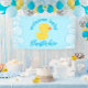 Rubber Duck Welcome Baby Name Hanging Vinyl Banner in Baby Blue.