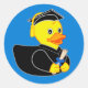 Rubber Ducky Graduation! Blue Background Classic Round Sticker