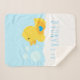 Quack, quack! The Rubber Ducky With Blue Heart Sherpa Blanket designed by Enchantfancy Design Company features a cute yellow duck with a blue heart on his wing. The yellow rubber ducky is floating on bath bubbles. Personalise with your choice of name! This blanket makes an adorable baby gift.