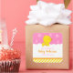 This cute and fun bookplate features an adorable yellow duck in white soapy bath bubbles on a bright pink background with an orange ribbon and yellow stripes. The text combines handwritten script and sans serif fonts for a stylish and modern look. This is perfect for a Baby Shower.