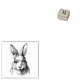 Stylish funny rubber stamp with retro image Rabbit, Hare. Antique graphics, retro drawing clipart, old picture.