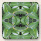Go green with the original rubber tree pattern by HomeWare on this Coaster. This tropically lush design was made from an original closeup photograph of the leaves of a rubber tree. The leaves are smooth and shiny, in natural shades of green, from a lighter, yellow green in the sunlight to a deeper green in the shadows. The leaves are plump looking and their light yellow green stems add a linear pattern to the photo design.