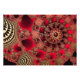 A sparkling fractal design with ornate spirals of dark and vivid red, overlaid with gold filigree like metallic seashells and studded with glittering rubies.