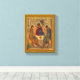 Antique Andrei Rublev artwork/icon depicting the Father, Son, and Holy Ghost seated at a table. The images appear to have angel wings.