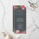 Elegant and modern ruby pink peony floral wedding program with painted watercolor flowers in pink and peach and lush green foliage, against a chic off-black background. Simply add your wedding details. If you need any help or matching products, please contact us through our store. We're happy to help you make your wedding the most beautiful day!