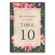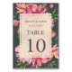 Ruby Pink Peony Floral Botanical Off-Black Wedding Table Number