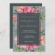 Elegant wedding invitation with a floral ruby pink peony design which features painted watercolor flowers in ruby pink and fresh green foliage on a complementary green background. For the back of the card we have used the colour black forest, a chic off-black. Simply add your wedding details. If you need any help or matching products, please contact us through our store. We're happy to help you make your wedding the most beautiful day!
