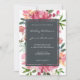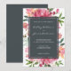 Elegant wedding invitation with a floral ruby pink peony design which features painted watercolor flowers in ruby pink and fresh green foliage. For the back of the card the colour black forest is used, a chic off-black. Simply add your wedding details. If you need any help or matching products, please contact us through our store. We're happy to help you make your wedding the most beautiful day!