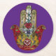 Ruby Pomegranate Heart Red Bird Hamsa Round Paper Coaster