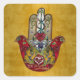 Ruby Pomegranate Heart Red Bird Hamsa Square Sticker