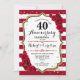 Ruby Red 40th Anniversary - Gold White Red Invitation