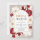 A beautifully crafted bridal shower invitation featuring ruby-red roses and soft white florals,