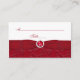 This ruby red and white floral place card with a red FAUX ribbon and jewelled brooch matches the wedding invitation shown below.